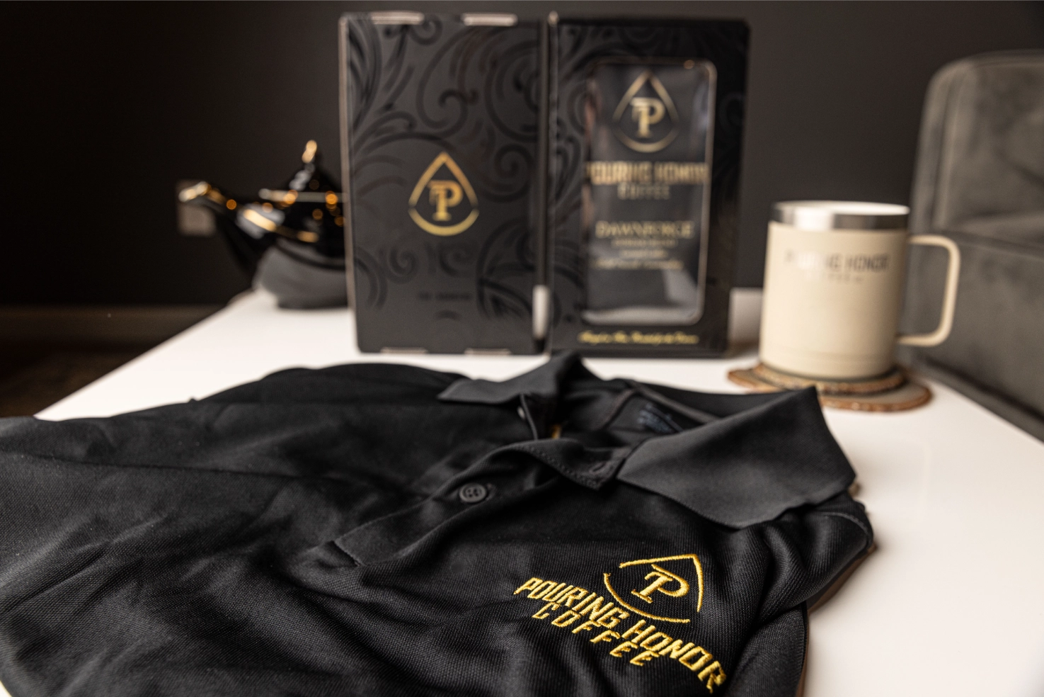 Suggested text: Our website address is: https://pouringhonorcoffee.com.